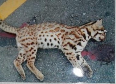 案例:2014年4月 一隻母石虎跨越西濱快速道路後龍路段時被撞死,遭棄置路旁草叢。